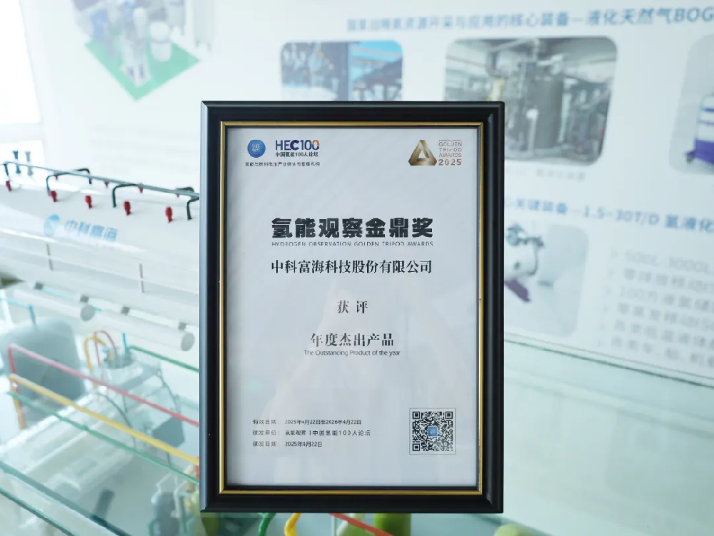 4月22日,CHEC2025第五屆世紀氫能與燃料電池大會在上海圓滿結(jié)束。會議以“聚焦氫未來,助力碳中和”為主題,旨在打通氫能產(chǎn)業(yè)各環(huán)節(jié),推動產(chǎn)業(yè)鏈發(fā)展。會議現(xiàn)場揭曉2025氫能觀察“金鼎獎”名單,中科富海憑借在氫能領(lǐng)域的產(chǎn)品創(chuàng)新研發(fā)和產(chǎn)品應用示范等方面的實踐成果,榮獲“金鼎獎·年度杰出產(chǎn)品”獎。氫能產(chǎn)業(yè)“金鼎獎”是...